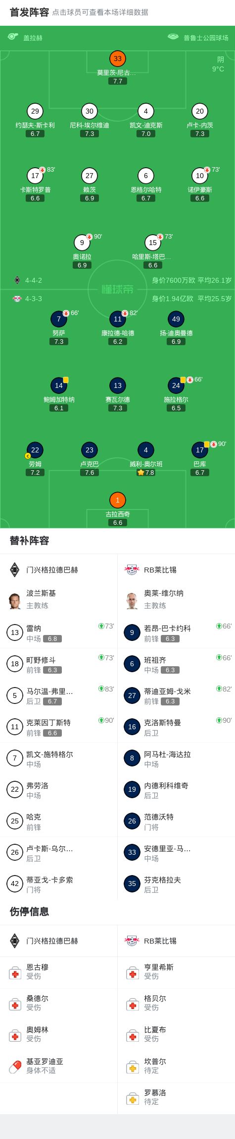 北京时间11月29日德国足球顶级联赛 联赛 第12轮,门兴格拉德巴赫主场对阵RB莱比锡。最终比分门兴格拉德巴赫 0-0 RB莱比锡。
