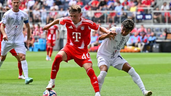 今年夏天在美国举办的世俱杯上,卡尔迎来了拜仁一线队首秀。事实上,从那以后,他便始终展现出沉稳自信的赛场气质,这位天生的足球运动员一心想要彰显自己的场上天赋。“我的优势之一是不惧怕任何对手,无论他们年龄多大,”卡尔在近期接受德国足协(DFB)采访时表示,“当然,我尊重每一位对手,但我总会努力踢出自己的正常水平,这是展现自身实力的最佳方式。”