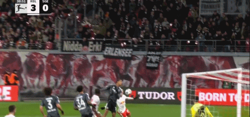 第5分钟,鲍姆加特纳长传,哈德头球吊射破门,莱比锡1-0法兰克福