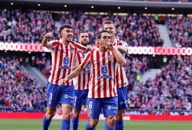 马竞排出442阵型。瑟洛特和阿尔瓦雷斯搭档双前锋。小西蒙尼、巴里奥斯、科克和尼古拉斯-冈萨雷斯组成4中场。莫利纳、普维尔、汉茨科和鲁杰里4后卫首发出战。奥布拉克担任首发门将。格列兹曼、拉斯帕多里和加拉格尔坐在替补席待命。