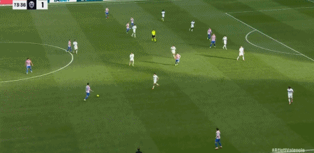 第74分钟,格列兹曼停球射门一气呵成,马竞2-1瓦伦西亚
