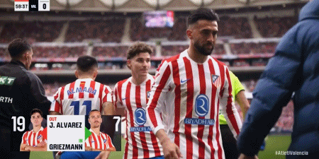 第59分钟,马竞换人,阿尔瓦雷斯、冈萨雷斯被换下,格列兹曼、加拉格尔替补登场