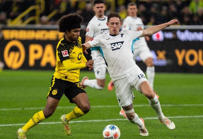 多特蒙德开场后在场面上并没有优势。显然,周中的德国杯消耗了球员不少体能,这让多特蒙德这次不得不踢得更加务实一些。不过,多特蒙德还是率先抓住了机会完成进球。布兰特在第43分钟中路包抄推射破门。半场结束,多特蒙德1-0领先霍芬海姆。