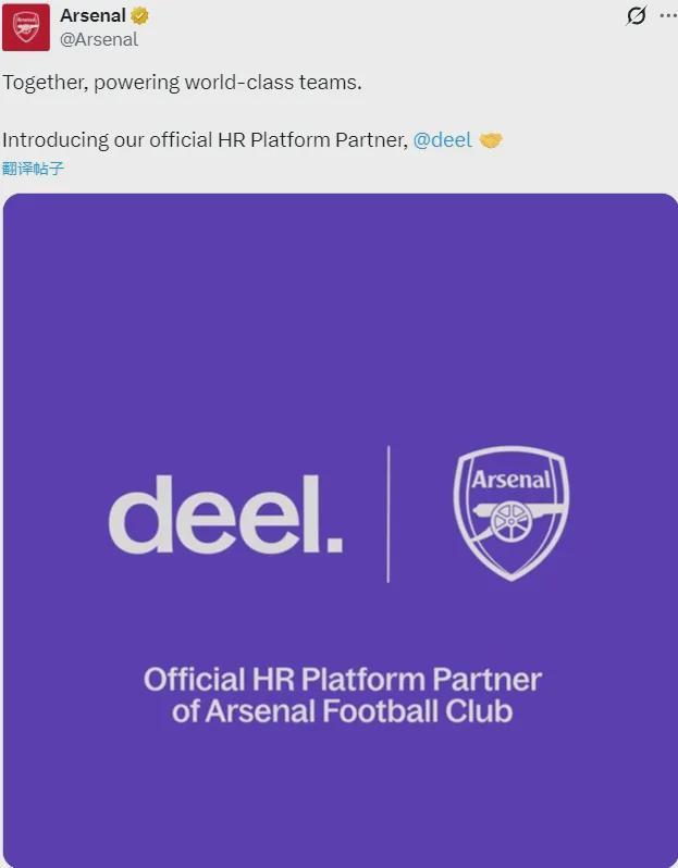 官方:阿森納宣佈和Deel建立長期合作夥伴關系,這傢全球領先的薪資支付和人力資源平臺將成為俱樂部官方人力資源平臺合作夥伴。