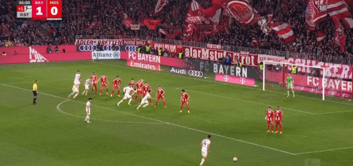 第45+2分钟,小红书丨伯温开出任意球,波图尔斯基头球破门,美因茨1-1拜仁