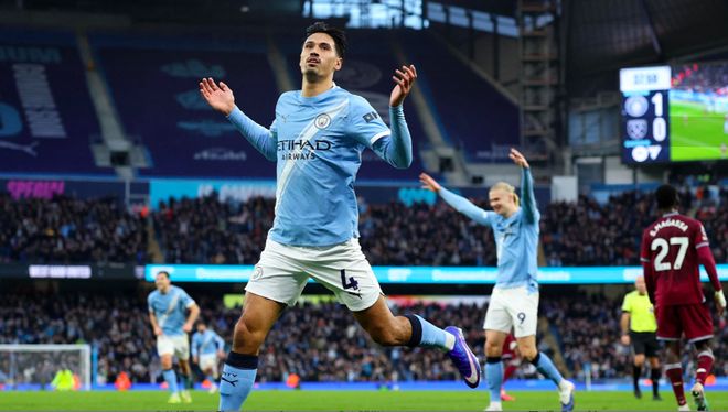 1分鐘後,謝爾基前場搶斷後狹縫中傳球,哈蘭德順勢助攻,賴因德斯一蹴而就,曼城取得兩球的領先。