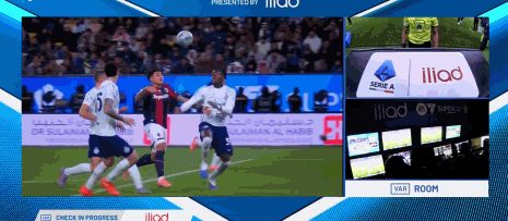 “第二個事件是博尼的點球被取消。基菲什麼都沒看到,他離那次的碰撞太遠。影像給出瞭提示,VAR回看持續瞭16秒,博尼不是在保護球,而是犯規,那是絕對的,他撞倒瞭黑格姆。這就像米蘭對薩索洛的比賽,切迪拉像博尼一樣伸開瞭腿,那不是保護球。保護球是線性的,而這裡前鋒伸開瞭腿。”