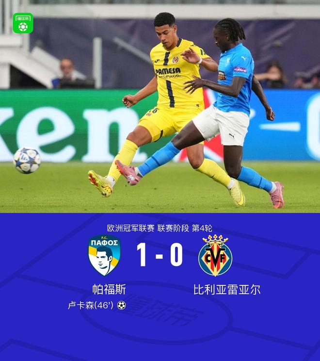 北京时间11月6日,欧洲冠军联赛联赛阶段第4轮展开较量,帕福斯迎战比利亚雷亚尔。下半场塞马开出角球,卢卡森头球破门。最终帕福斯1-0战胜比利亚雷亚尔斩获队史欧冠首胜关键事件第46分钟,塞马开出角球,卢
